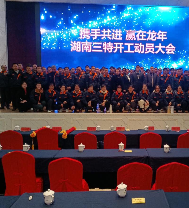 2月27日上午9:18,湖南三特開工動員大會在御景園大酒店五樓御景廳如期舉行,公司總經理劉海雄先生攜全體高管團隊、各部門員工逾百人出席。